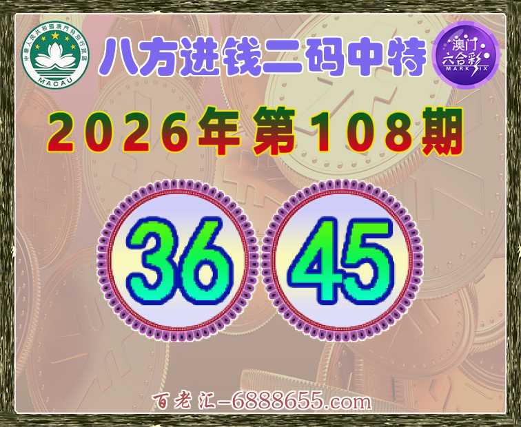 108期:『八方进钱』 🏅二码中特🏅【36.45】开:45