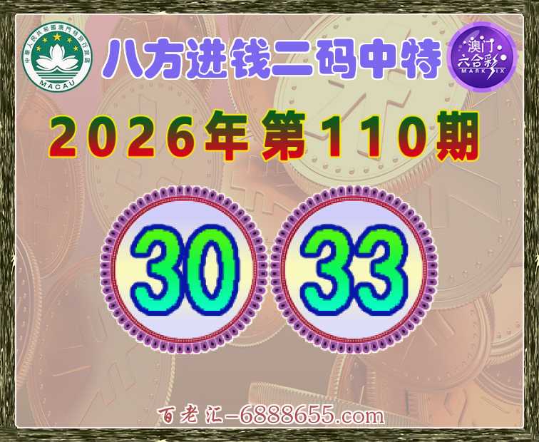 110期:『八方进钱』 🏅二码中特🏅【30.33】开:30