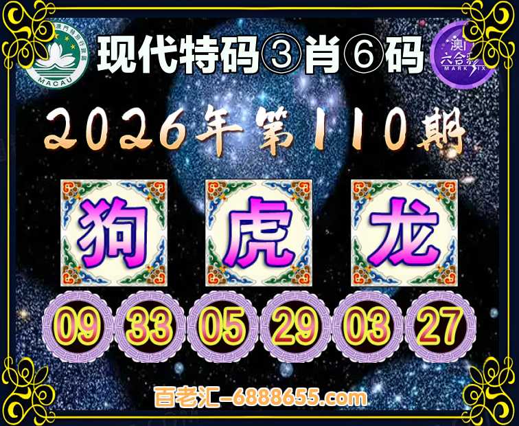 110期: ⛩️『现代特码』 ⛩️③肖⑥码⛩️【狗虎龙】开:牛30