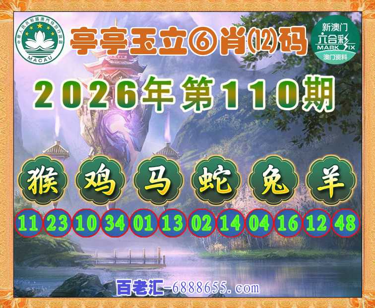 110期:【亭亭玉立】 🏵️⑥肖⑿码🏵️【猴鸡马蛇兔羊】开:牛30
