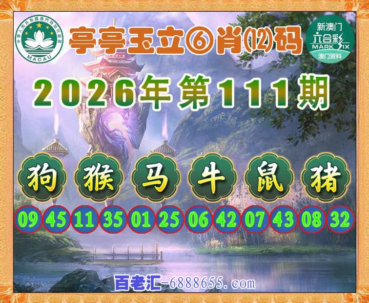 111期:【亭亭玉立】 🏵️⑥肖⑿码🏵️【狗猴马牛鼠猪】开:00准