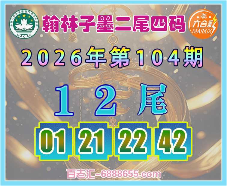 104期:【翰林子墨】 ♥️二尾四码♥️【12尾主:01.21.22.42】开:01