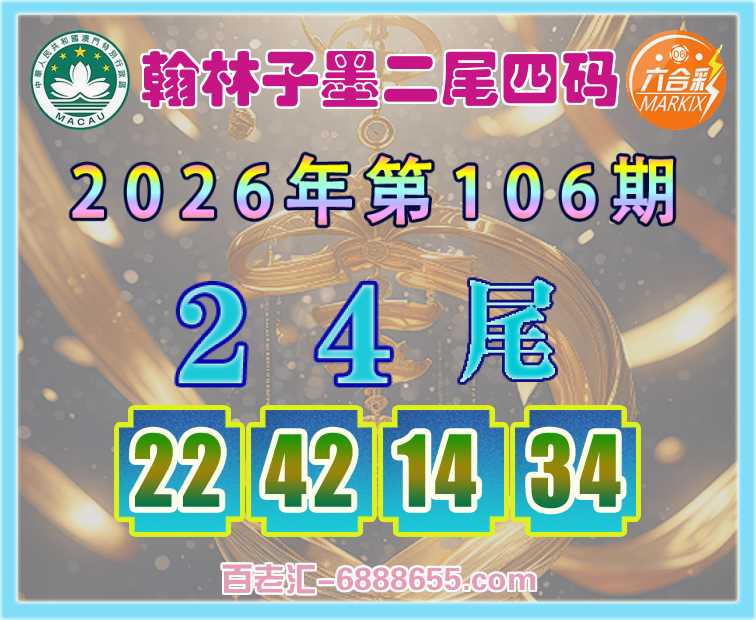 106期:【翰林子墨】 ♥️二尾四码♥️【24尾主:22.42.14.34】开:22