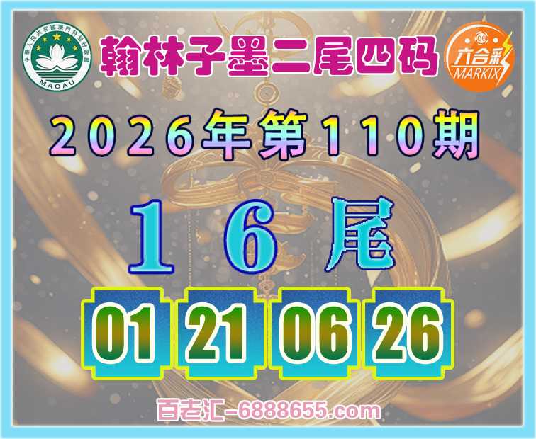 110期:【翰林子墨】 ♥️二尾四码♥️【16尾主:01.21.06.26】开:30