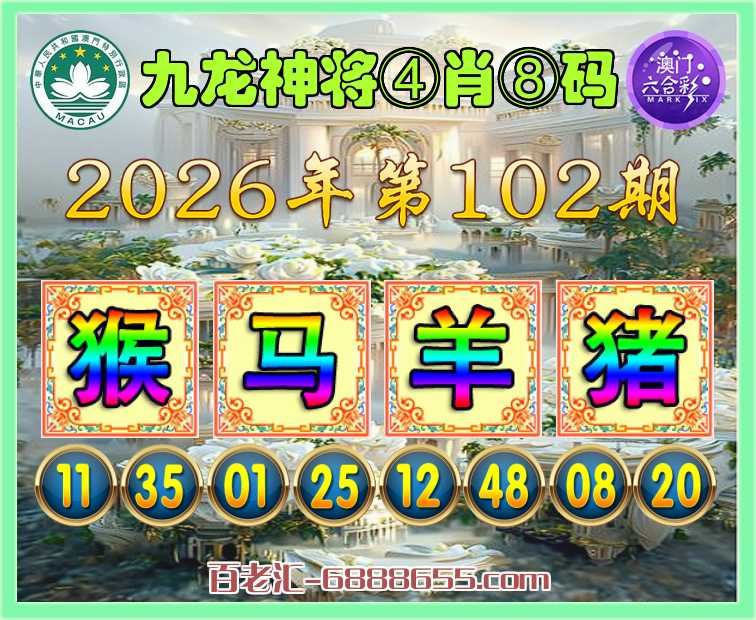 102期:『九龙神将』 🎖️④肖⑧码🎖️【猴马羊】开:猪20