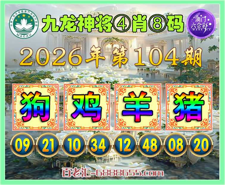 104期:『九龙神将』 🎖️④肖⑧码🎖️【狗鸡羊猪】开:马01