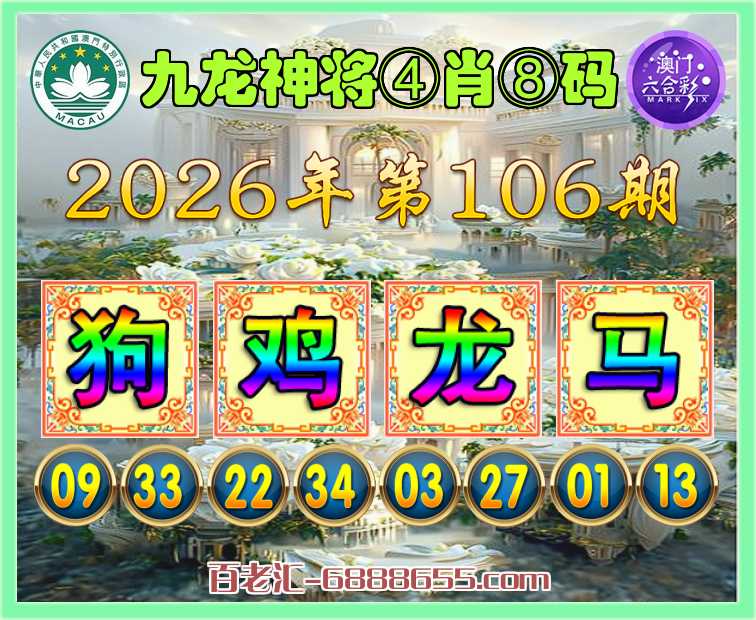 106期:『九龙神将』 🎖️④肖⑧码🎖️【狗龙马】开:鸡22