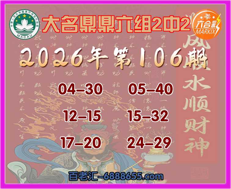 106期:《大名鼎鼎》 ♥️六组2中2♥️