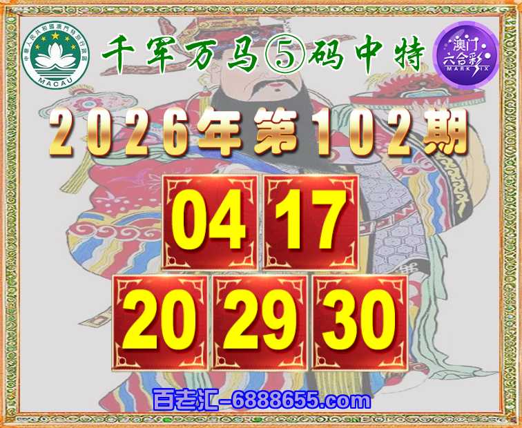 102期:【千军万马】 ♠️⑤码中特♠️【04.17.20.29.30】开:20