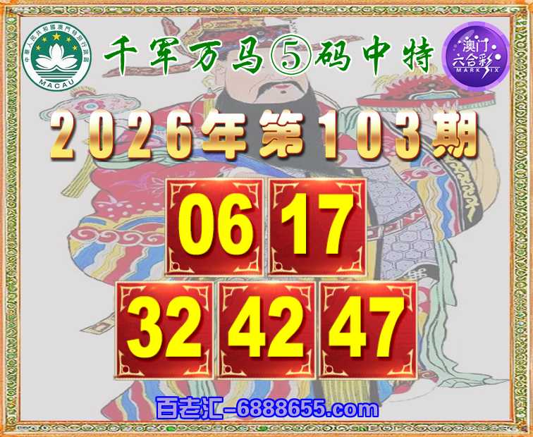 103期:【千军万马】 ♠️⑤码中特♠️【06.17.32.42.47】开:06