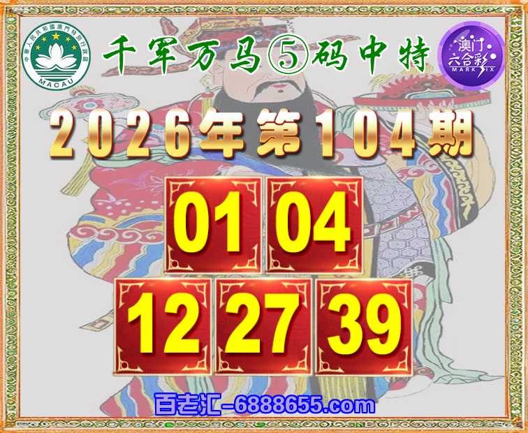 104期:【千军万马】 ♠️⑤码中特♠️【01.04.12.27.39】开:01