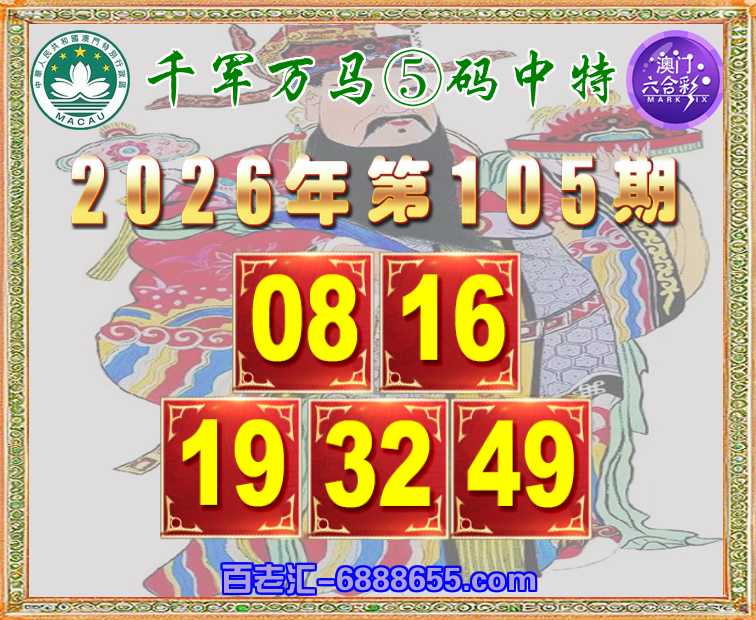 105期:【千军万马】 ♠️⑤码中特♠️【08.16.19.32.49】开:28