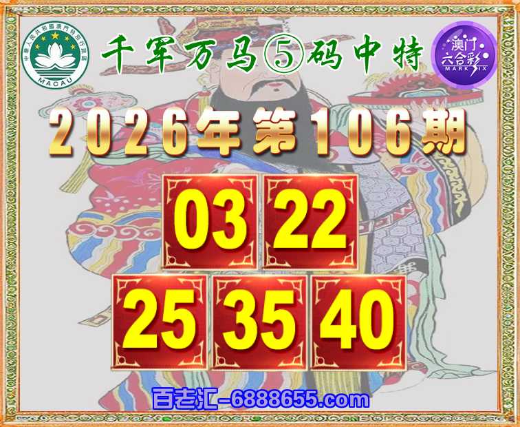 106期:【千军万马】 ♠️⑤码中特♠️【03.22.25.35.40】开:22