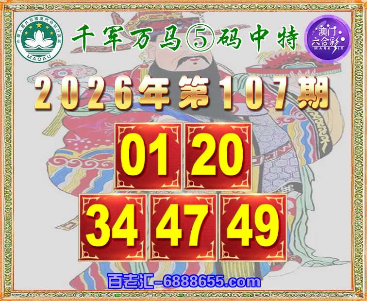 107期:【千军万马】 ♠️⑤码中特♠️【01.20.34.47.49】开:49