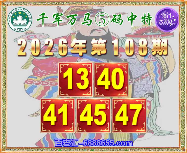 108期:【千军万马】 ♠️⑤码中特♠️【13.40.41.45.47】开:45