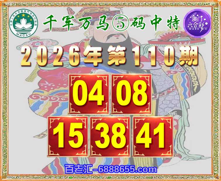 110期:【千军万马】 ♠️⑤码中特♠️【04.08.15.38.41】开:30