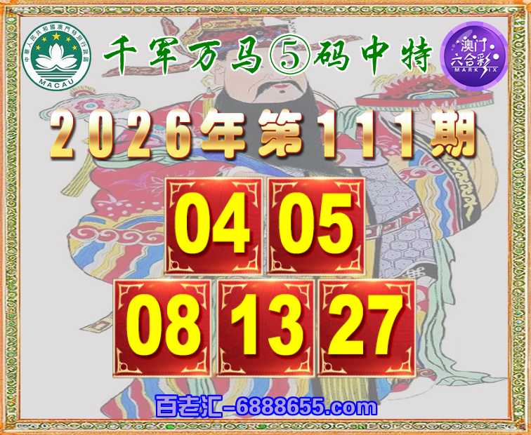 111期:【千军万马】 ♠️⑤码中特♠️【04.05.08.13.27】开:00准