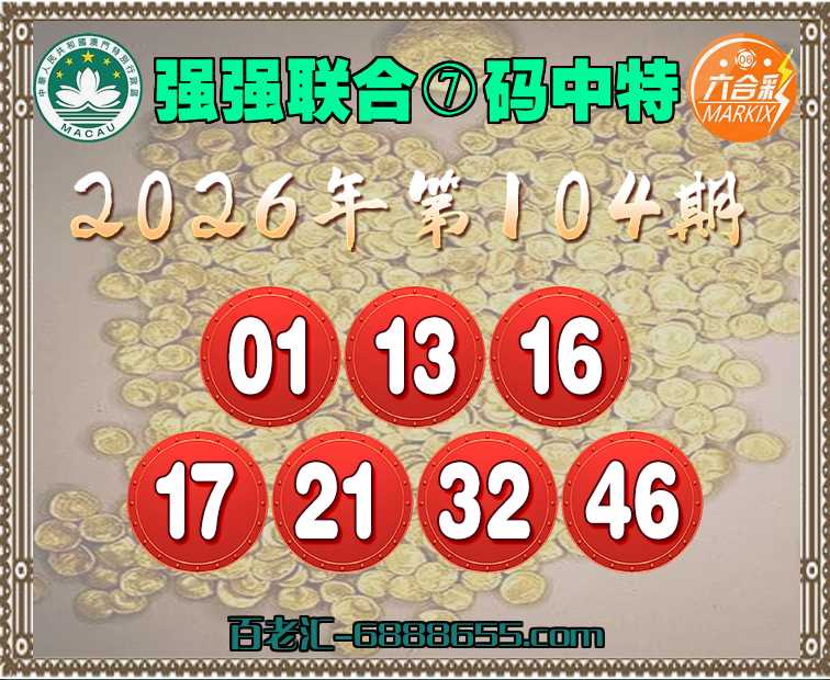 104期: 📸《强强联合》 📸⑦码中特📸【01.13.16.17.21.32.46】开:01