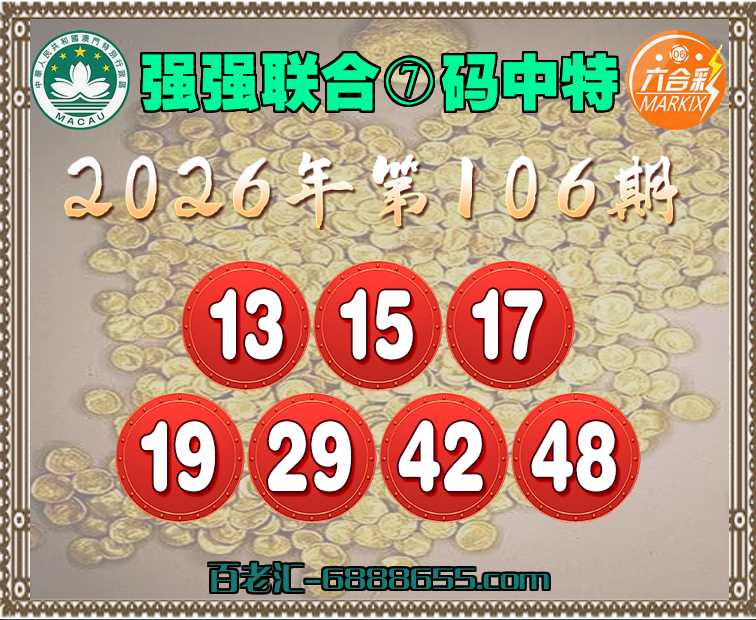 106期: 📸《强强联合》 📸⑦码中特📸【13.15.17.19.29.42.48】开:22