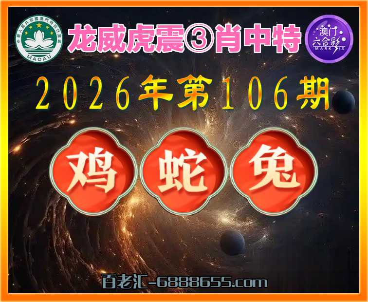 106期:〖龙威虎震〗 ⛩️③肖中特⛩️【.蛇.兔】开:鸡22