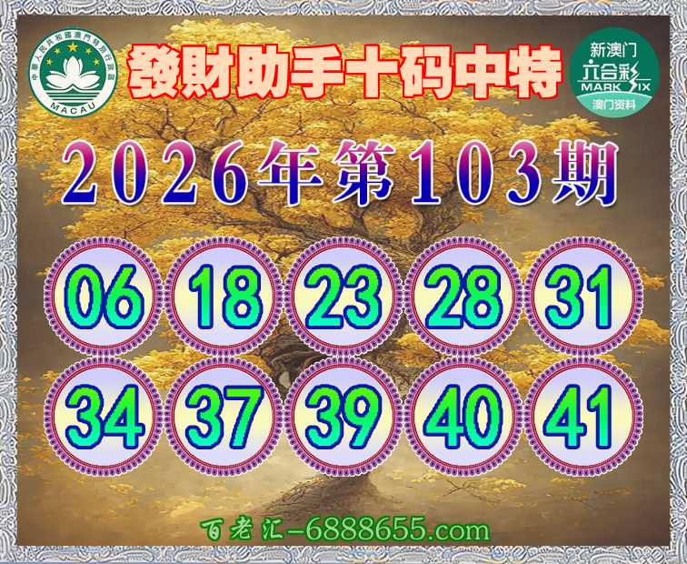 103期:【發財助手】 💄十码中特💄开:06