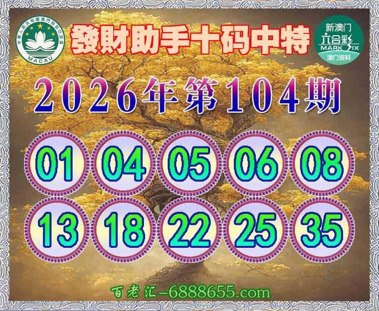 104期:【發財助手】 💄十码中特💄开:01